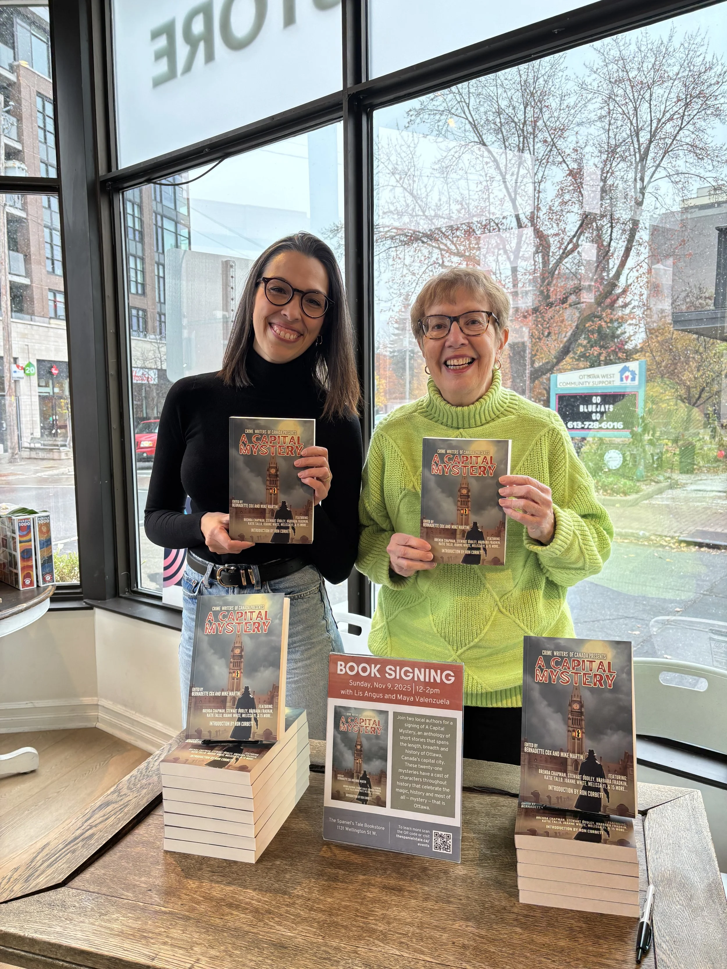 Signing copies of A Capital Mystery with Maya Valenzuela at A Spaniel’s Tale bookstore in Ottawa.
